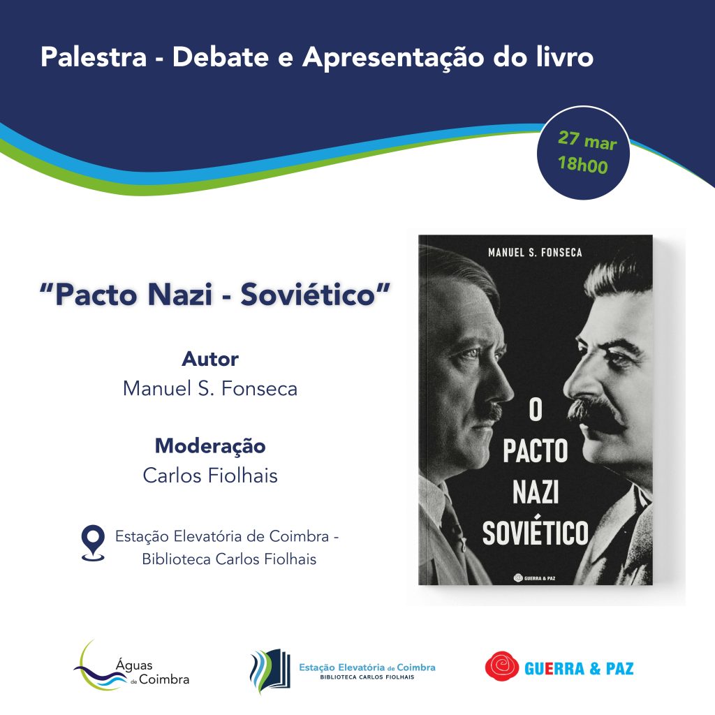 Na próxima quinta-feira, dia 27 de março, pelas 18h00, realiza-se a apresentação do livro “Pacto Nazi-Soviético”, da autoria de Manuel Fonseca, na Estação Elevatória de Coimbra – Biblioteca Carlos Fiolhais. Publicado pela editora Guerra & Paz, este livro apresenta um conjunto de documentos essenciais para compreender o início da II Guerra Mundial. A obra explora […]