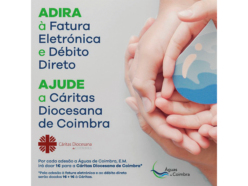 Se aderir à fatura eletrónica e ao débito direto da Águas de Coimbra está a apoiar uma causa solidária e amiga do ambiente! Contribua para os serviços de apoio social da Cáritas Diocesana de Coimbra. Pode aderir à fatura eletrónica e ao débito direto: – através do registo no Balcão Digital, no site da Águas de […]