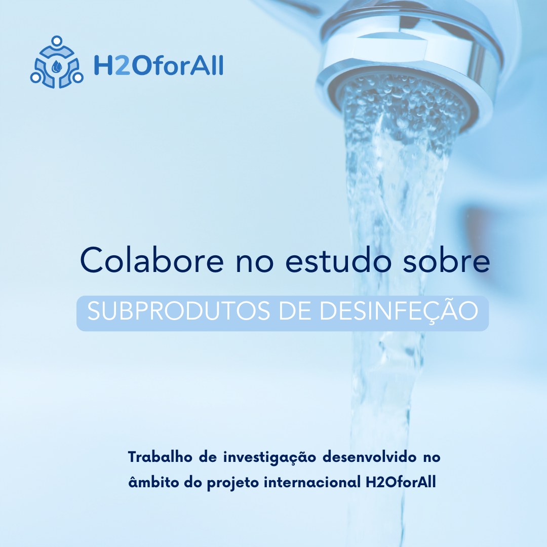 No âmbito do projeto de investigação H2OforAll, está a decorrer um inquérito sobre a perceção pública relativamente à qualidade da água e aos subprodutos de desinfeção (DBPs) – compostos que podem surgir durante o processo de desinfeção da água potável.