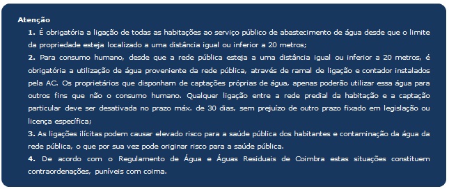 Contudo, a qualidade da água colocada à disposição do cliente na entrada do seu prédio (ramal de ligação) pode sofrer alterações devido à falta de manutenção da rede predial doméstica. Assim, lembramos-lhe alguns fatores que podem contribuir para a degradação da qualidade da água com origem nas redes prediais, nomeadamente: (1) A antiguidade das canalizações com utilização de materiais obsoletos e degradados particularmente devido à corrosão a que estão sujeitos; (2) O mau estado de conservação das torneiras; (3) A realização de obras/alterações nas redes prediais; (4) A ausência de manutenção dos reservatórios de água na rede predial; (5) A estagnação da água devido a ausência de consumo por período prolongado.